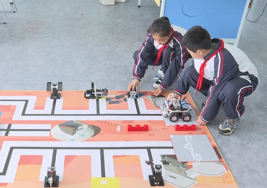 旋转、伸展,机器人游刃有余地完成了各项任务。围绕着机器人的几个学生脸上露出了开心的笑容,从搭建机器人、编写程序到动手操作完成任务,全是这几个学生自主完成的。杨宝鑫作为智能机器人社团的“骨干队员”,他告诉记者,从一开始对AI的陌生与困惑,到现在在机器人大赛中屡战屡胜,参加每一次活动都给了他们团队不小的收获。