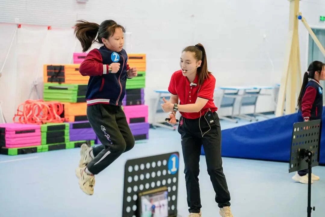 仇珍珍执教小学四年级体育《小毛巾 大能量》,小毛巾很“多变”,抓尾巴、打地鼠……让学生在游戏训练中发展体能。“AI”游戏让学生身临其境地进行测评,并直观分析。课后作业通过二维码扫一扫带回家,让课堂内外得到有效延续。