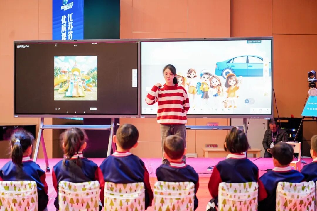 李舒玙执教幼儿园大班《打卡盐城我来话》,充分运用希沃白板、豆包、数字人、自写程序等信息化技术,设置情境,代入小导游角色,使教学过程更加丰富、有趣、多元,幼儿在生动有趣的课堂中得到了语言和思维的有效发展。