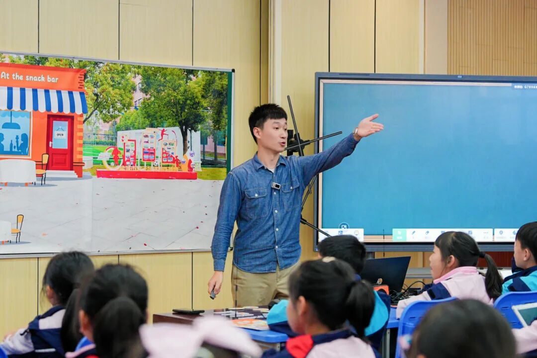 秦李鸣执教小学四年级英语《4AU6 At the snack bar》,以虚拟现实(VR)及裸眼3D技术构建课文场景,创建沉浸式学习环境;通过AI技术实现学生与书本人物的互动;基于希沃易课堂对学生的练习结果提供即时反馈并纠错,为学生提供更为高效、个性化的学习体验。?