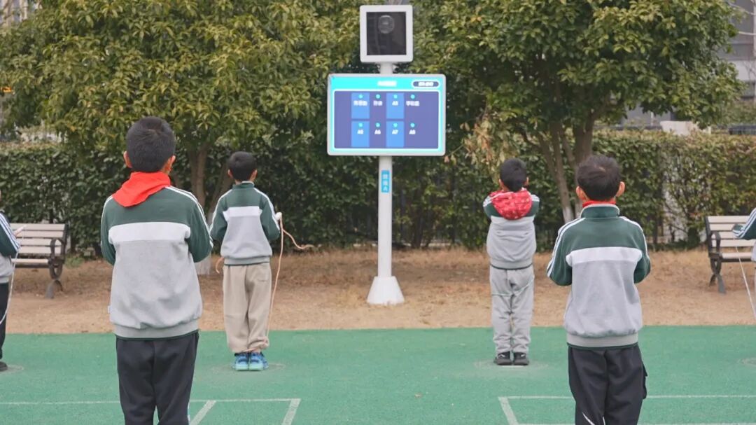 在AI技术的赋能下,学校的体育课也焕然一新。操场上,随着电子发令声响起,学生从50米跑道起跑,AI摄像头实时捕捉动作轨迹,智慧大屏同步显示冲刺速度、反应时间和成绩。“智慧体育器材使教学更科学、有针对性,借助平台数据分析,能看清学生优劣势,从而制定个性化教学方案。”体育老师邱晶晶说。
