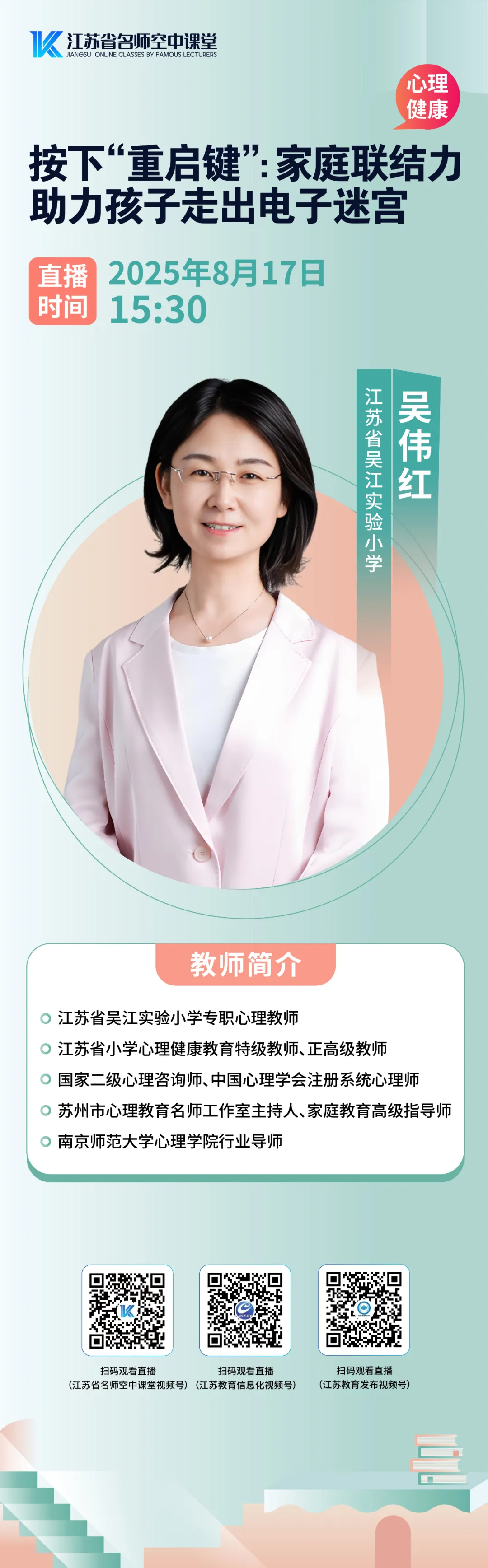 吴伟红,江苏省小学心理健康教育特级教师、正高级教师,国家二级心理咨询师,现任江苏省吴江实验小学教育集团爱德校区专职心理教师,苏州市心理教育名师工作室主持人,南京师范大学心理学院行业导师,《江苏教育》“案例评析”栏目主持人。