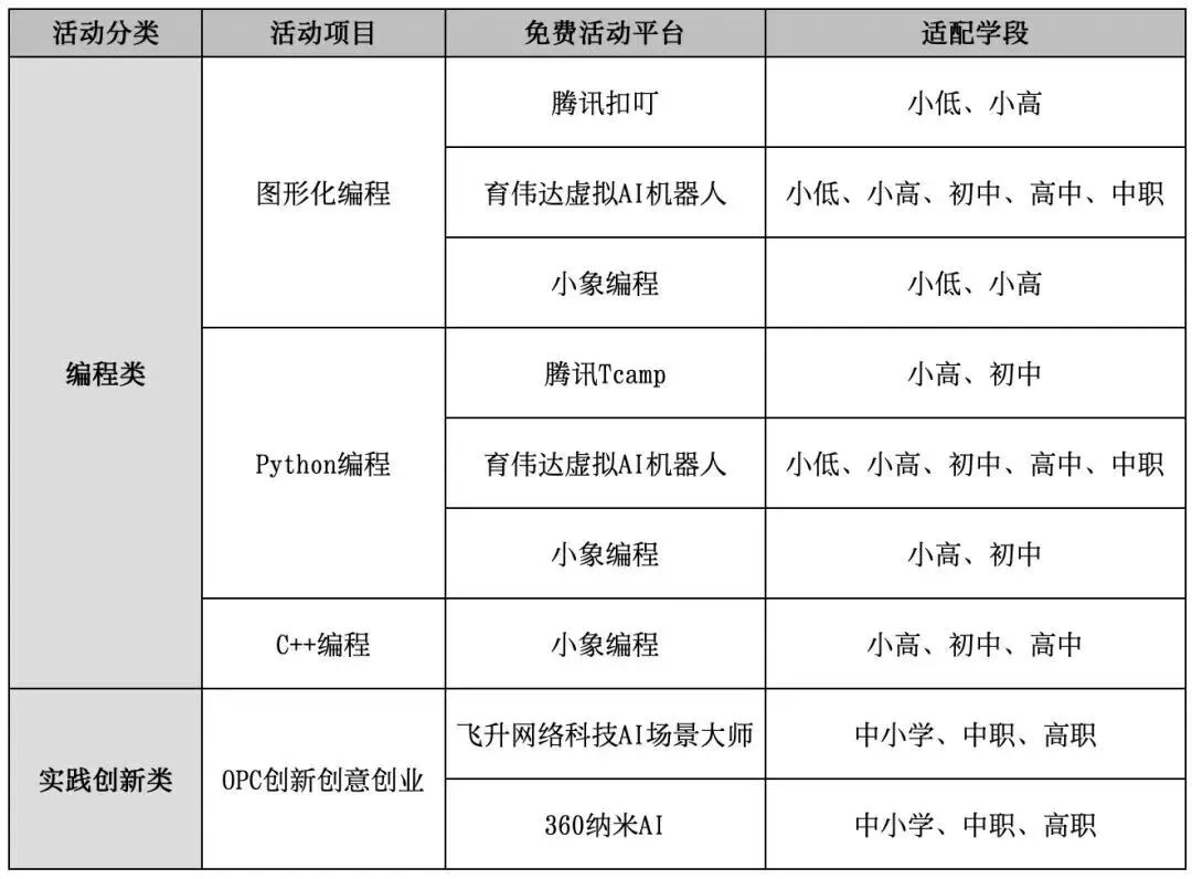 活动项目设置编程类和实践创新类两大类别,按小学低年级组、小学高年级组、初中组、高中组、中职组、高职组6个组别进行。
