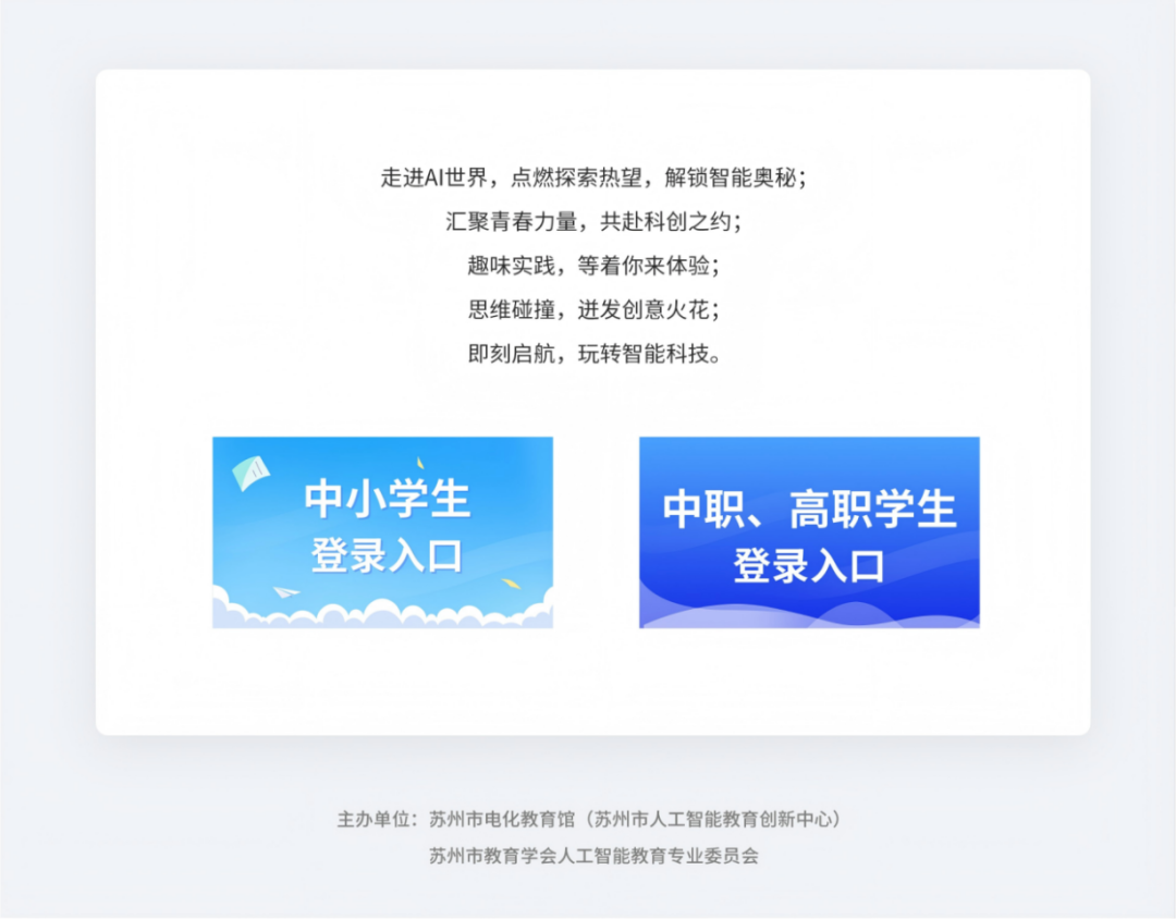分创新、创意、创业三大类别,对应授予“苏州市青少年人工智能创新先锋”“苏州市青少年人工智能创意达人”“苏州市青少年人工智能创业之星”荣誉证书。