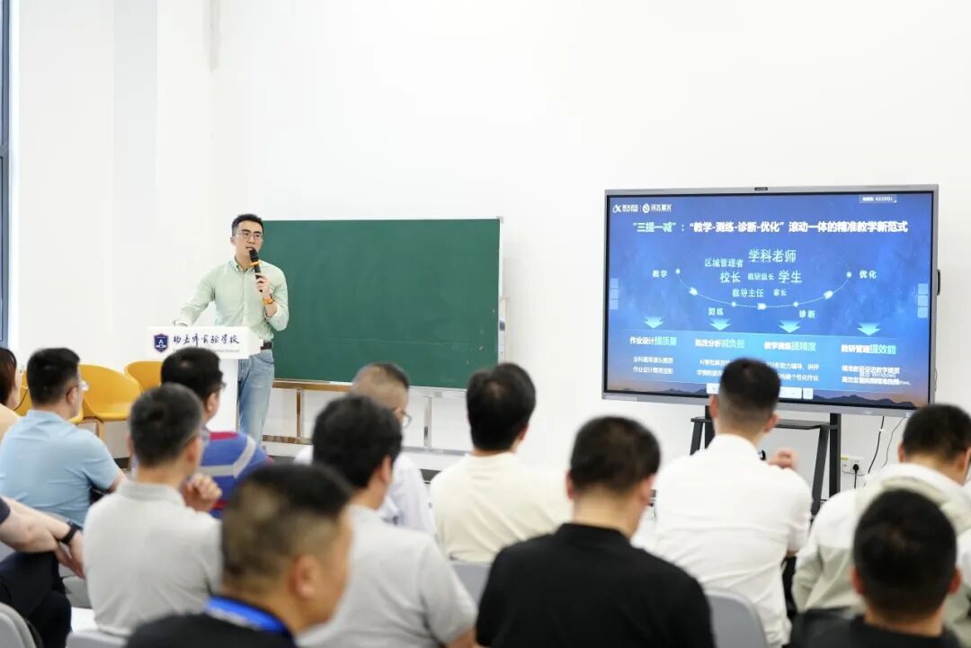 为深入推进国家教育数字化战略行动,探索数字技术在教育领域的创新应用,搭建校企交流合作平台,助推苏州教育数字化转型高质量发展,今天(4月19日),苏州数字教育校企沙龙第三期活动在苏州市吴江区杨嘉墀实验学校举行。沙龙以“拥抱AI时代,推进精准教学变革”为主题。