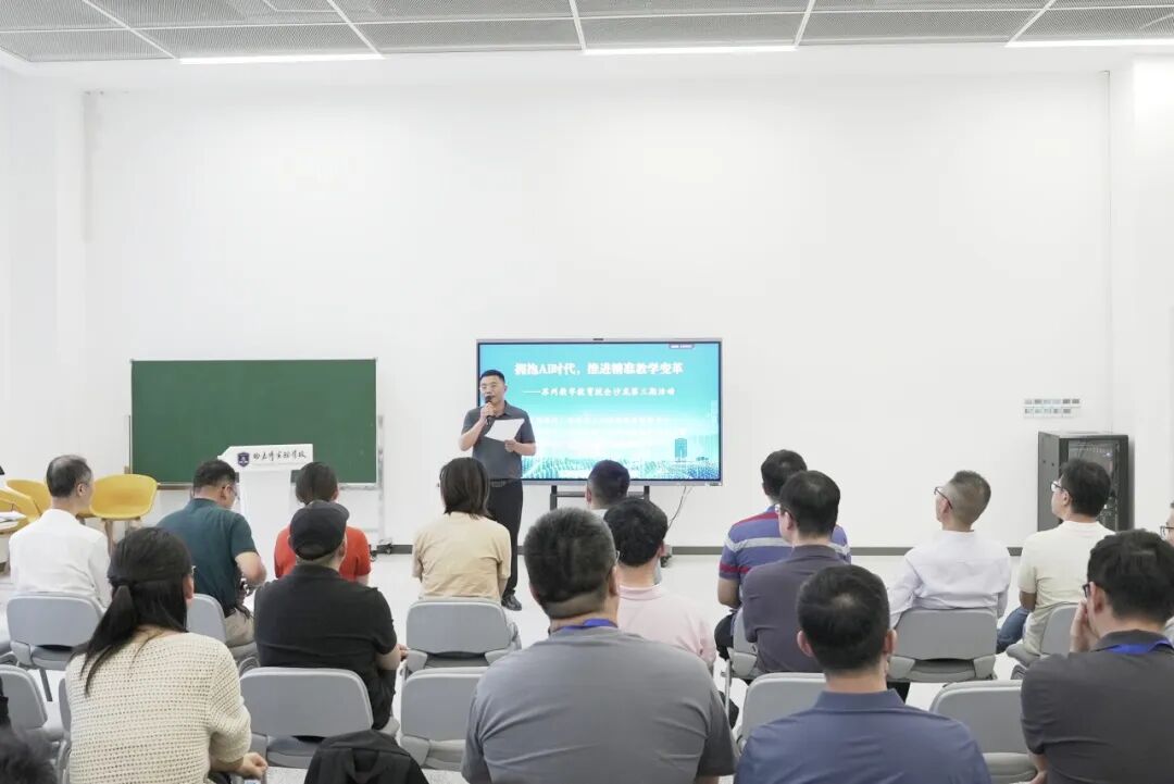 苏州市人工智能教育创新中心负责人曹海榕出席沙龙并致辞。他指出,苏州作为智慧教育示范区始终以“技术赋能教育”为使命,目前AI正深刻重塑教育生态,举办校企沙龙正是凝聚校企双方智慧,破解教育转型难题的重要手段,也是讨论如何让技术服务于“因材施教”,如何让教学更精准、更科学的重要途径。