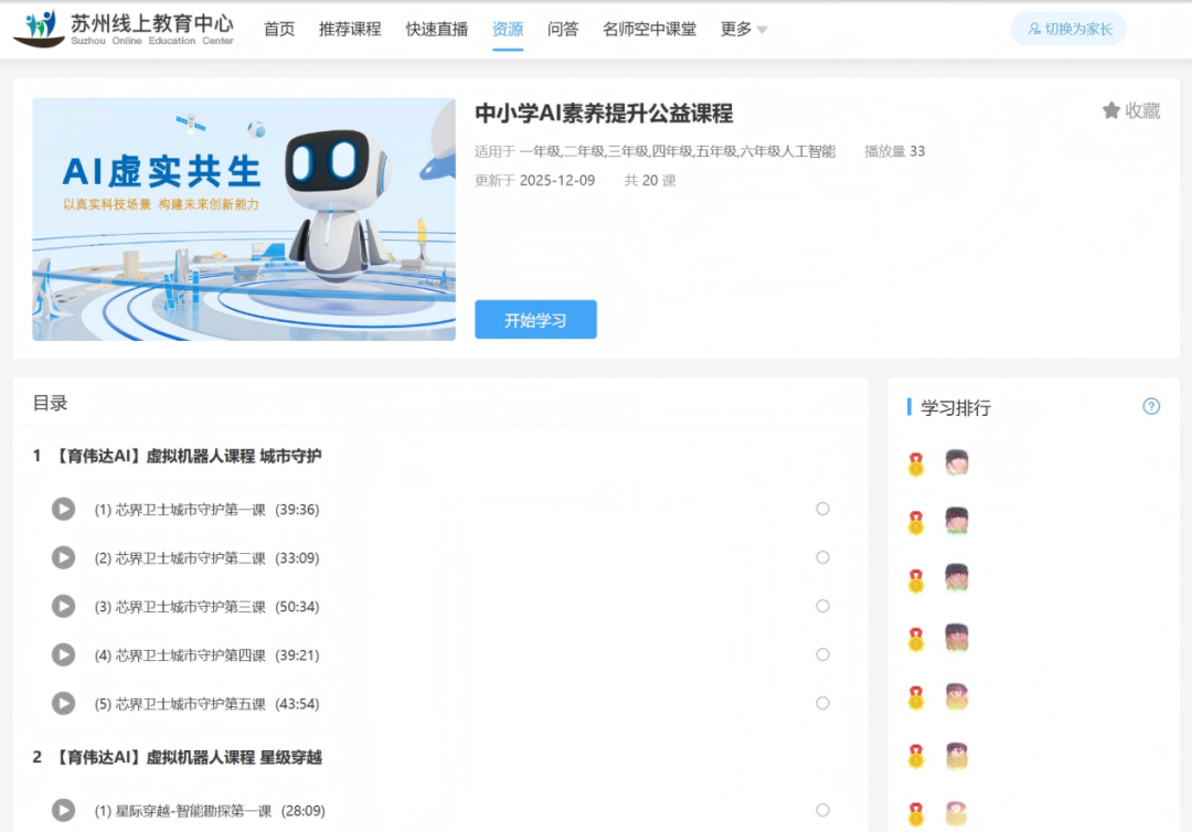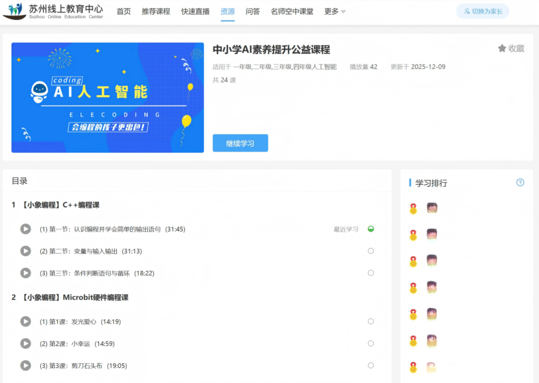 为引导同学们不止于“使用AI”,更能深度“理解AI、驾驭AI”,苏州线上教育中心上线了中小学AI素养提升公益课程,为大家搭建系统化的科创学习桥梁!课程以“AI人工智能”“AI虚实共生”两大核心主题为脉络,将抽象的人工智能原理、复杂的编程逻辑,转化为贴近生活的真实场景和趣味十足的互动案例,搭配生动讲解与直观演示——哪怕是编程零基础的同学,也能快速上手、轻松入门,在探索中感受科技的魅力!同学们可根据个人习惯安排学习时间,按需选择课程章节观看,为后续实践创作筑牢根基!