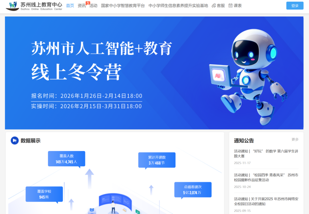 参与者可通过网页端搜索“苏州线上教育中心”官网,地址:https://sjxs.suzhou.edu.cn,找到首页活动轮播图并点击进入活动专题页面。