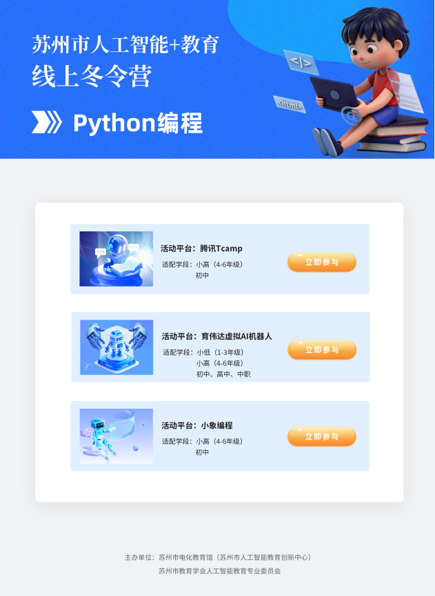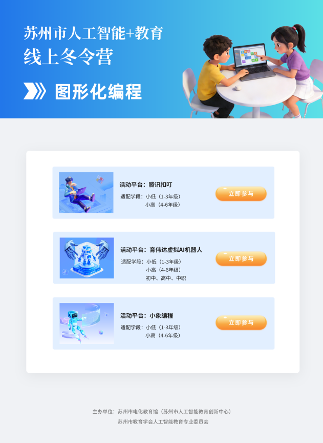 将获得“苏州市人工智能+教育线上冬令营活动优秀指导教师”荣誉证书。