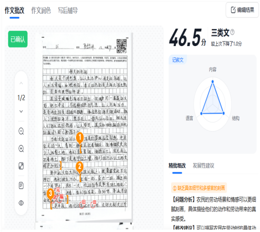 还可以智能批阅,学生自己拍照上传作文给智能体,自主完成作文诊断、获取分层个性化建议,即写即批,反思修改。